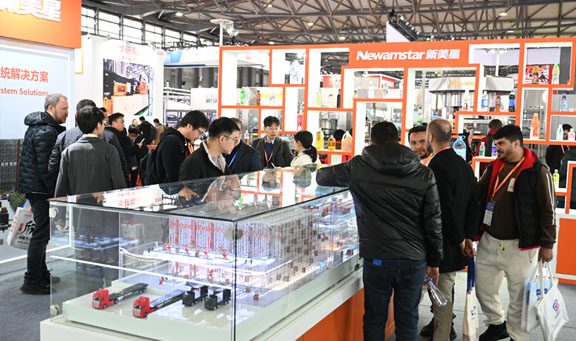 花兒朵朵開,清茶裊裊香。在這一方天地里,每一位新美星人,專注傾聽,耐心解答,認(rèn)真溝通。VR體驗(yàn)區(qū),感受智慧物流的有序流動(dòng);設(shè)備展示區(qū),探索超大瓶吹貼灌旋的科技之光;模型擺放區(qū),挖掘產(chǎn)存一體化智能工廠的價(jià)值。