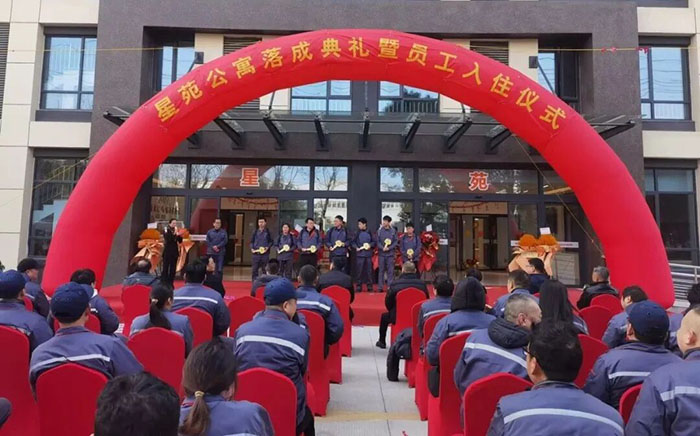 慶典現(xiàn)場,大家興高采烈,共同見證。首先由項目執(zhí)行小組代表和安環(huán)與設備部代表分別就項目實施情況和安全環(huán)保情況進行了匯報。隨后,董事長發(fā)表了熱情洋溢的講話,感謝為星苑建設付出心血的團隊及合作伙伴,祝賀每一位入住員工的“喬遷之喜”,真誠表達了公司的關愛之情,期待入住員工在幸福安居的同時,與公司同奮斗共成長,奔赴更廣闊的星辰大海!